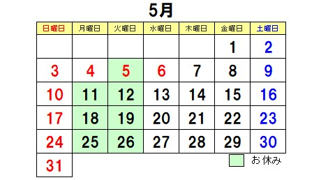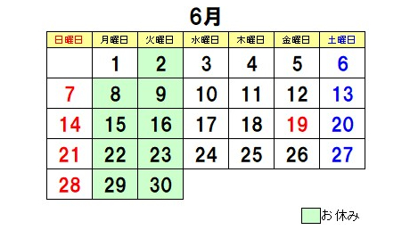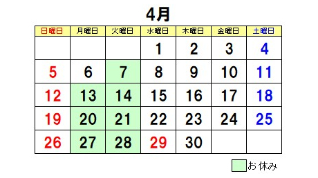 | 定休日 | 毎週火曜日、第2・3・4・5月曜連休 |